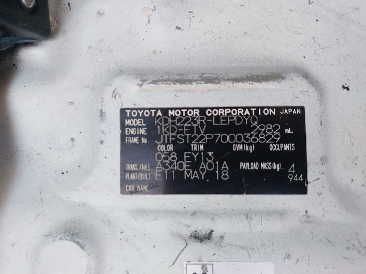 Chassis # | JTFST22P700036829 | Mileage | 283,500 (km) |