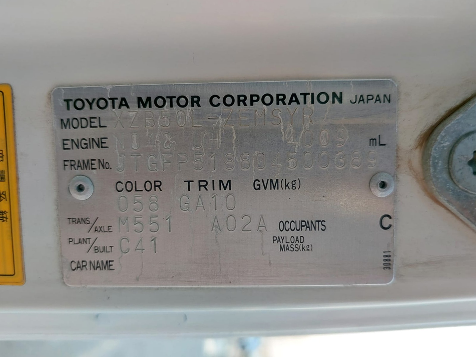 | Chassis # | JTGFP518604500389 | Mileage | 397500 (km) |